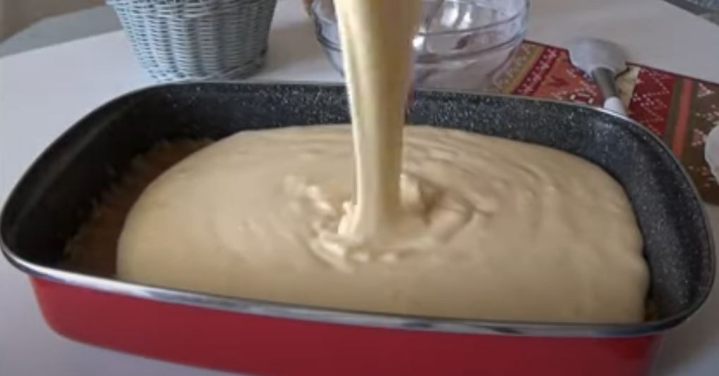 Βγαζουμε το κέικ από το φούρνο και ρίχνουμε χλιαρό το σιρόπι πάνω στο ψημένο κέικ με μία κουτάλα