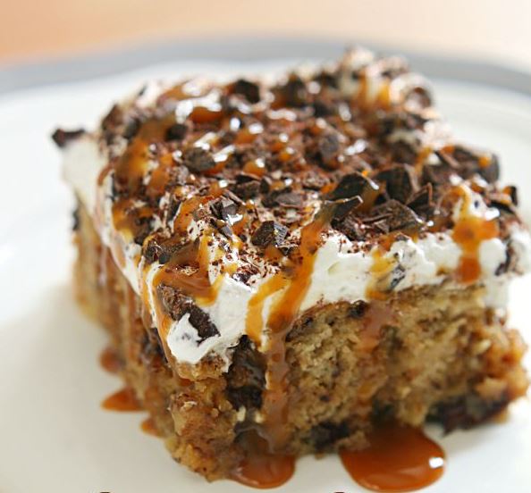 Κέικ μπανάνας με σαντιγί και σιρόπι καραμέλας