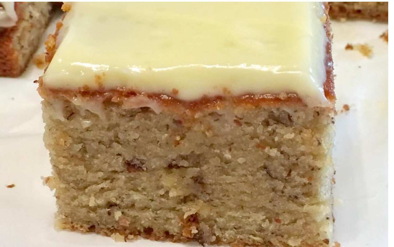 Αλείφουμε το ταψί με βούτυρο ή λάδι. Ρίχνουμε το κουρκούτι στο ταψί. Ψήνουμε 25-30 λεπτά. Αφήστε αν κρυώσει εντελώς!