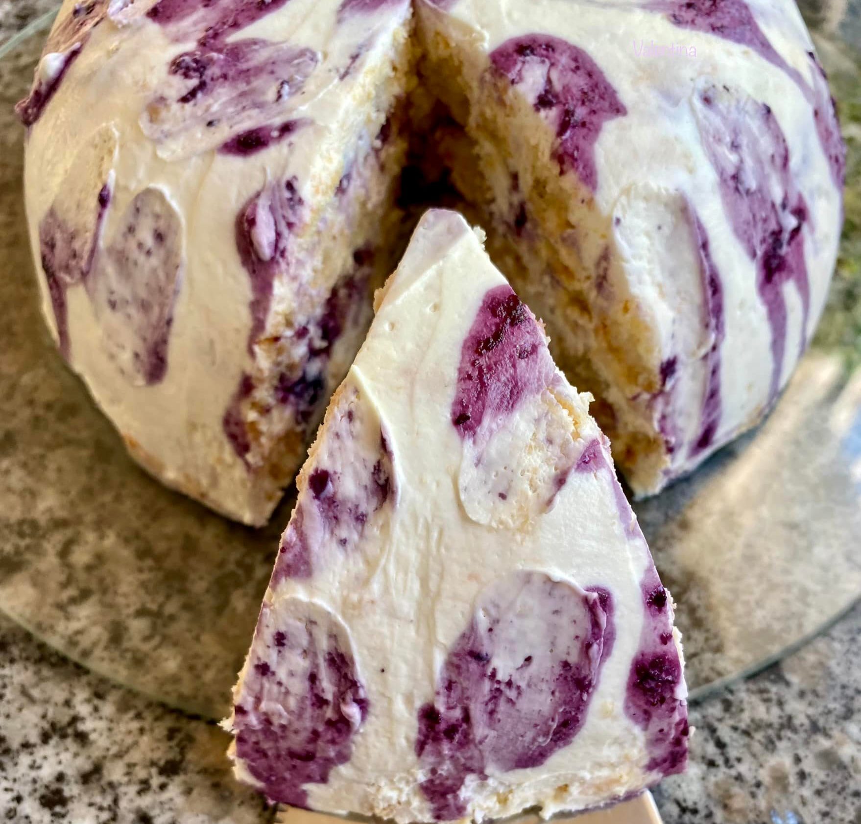 Κέικ μπισκότου(σαβαγιαρ) με μαρμελάδα μύρτιλλο