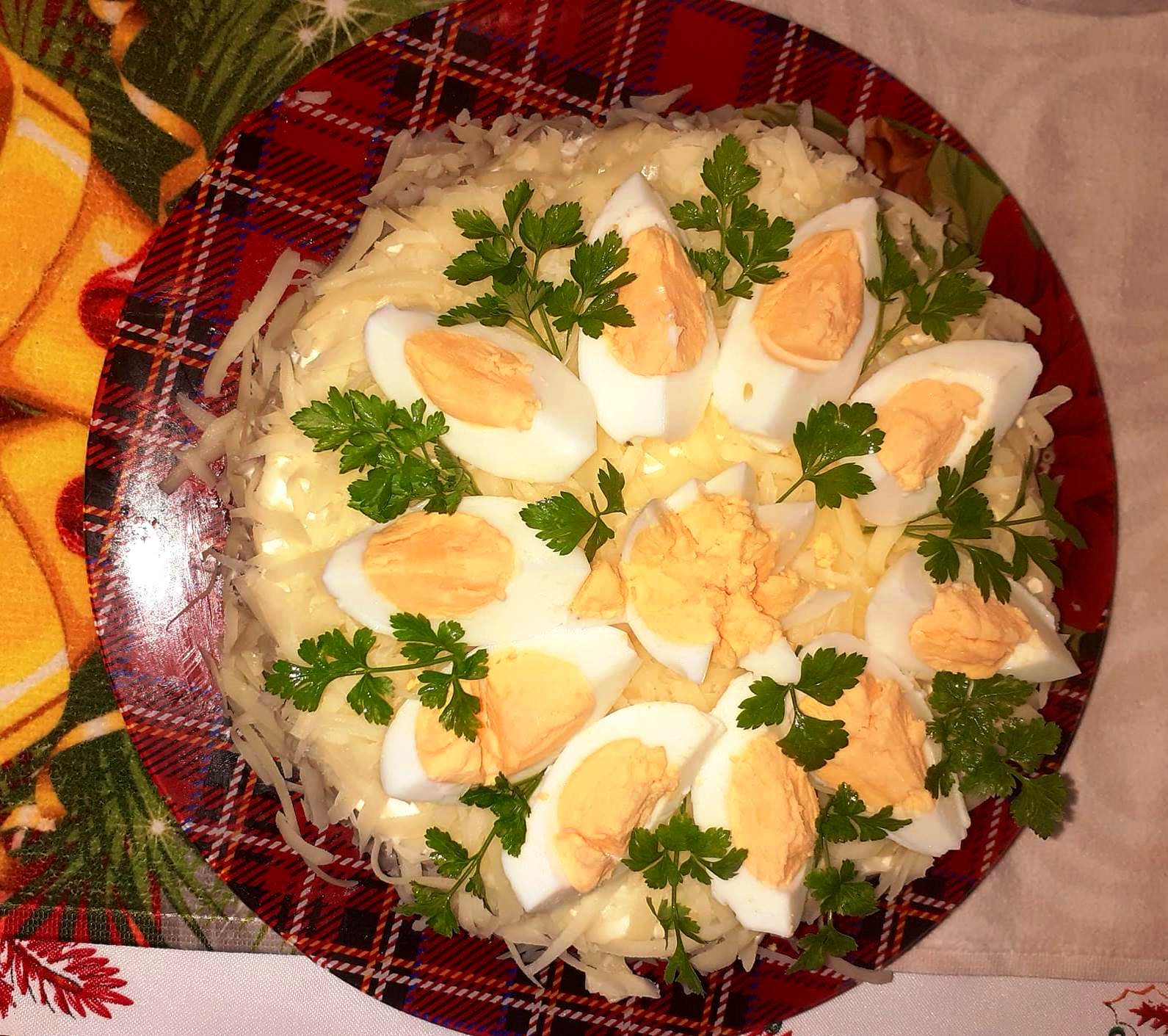 και διακοσμούμε με ψιλοκομμένα αυγά.