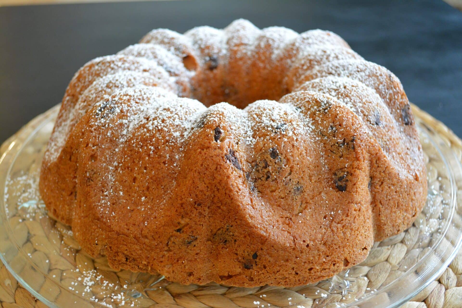 Ρίχνουμε τη ζύμη κέικ στο καλούπι για κέικ με διάμετρο 21 cm και ψήνουμε στο φούρνο προθερμασμένο στους 190 βαθμούς μέχρι να ροδίσει.