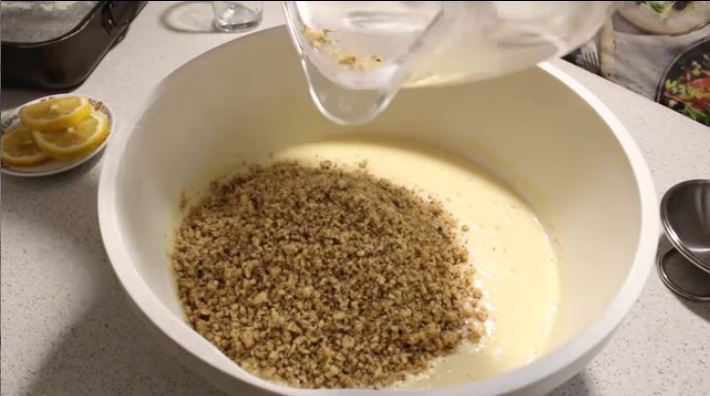 Προσθέτουμε τα καρύδια και ανακατεύουμε ελαφρά μ ένα κουτάλι.
