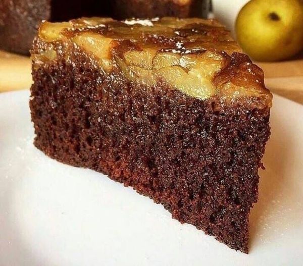 Ρίχνουμε το σιμιγδάλι με το κεφίρ, προσθέτουμε αυγά, γλυκαντικό για γεύση και σόδα, ανακατεύουμε και αφήνουμε για 30 λεπτά. Σε ένα ζεστό τηγάνι λιώνουμε το βούτυρο, προσθέτουμε τη ζάχαρη, το ψιλοκομμένο αχλάδι και σιγοβράζουμε σε χαμηλή φωτιά για 10-15 λεπτά. Προσθέστε κακάο στο μειγμα σιμιγδαλιου και ανακατέψτε.