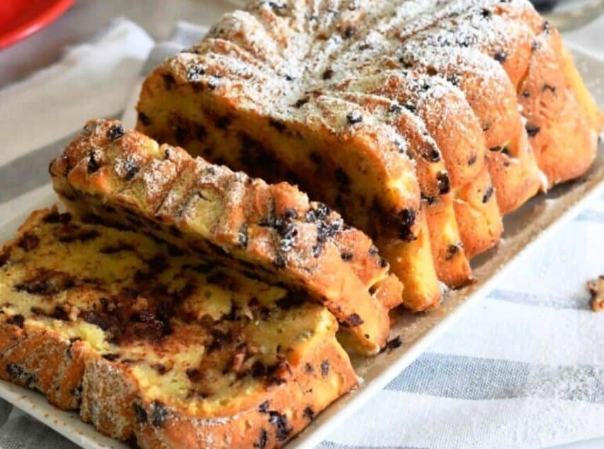 Ένα τέλεια γεμάτο και υγρό κέικ με κρέμα τυριού και κομματάκια σοκολάτας.