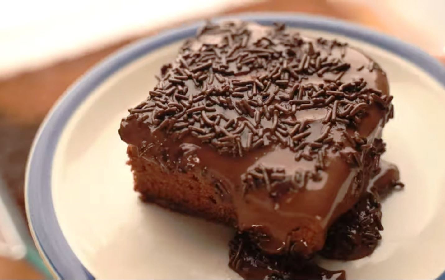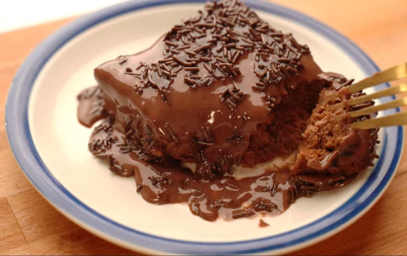 Περιχύνουμε το κέικ με ένα ποτηρι γάλα.