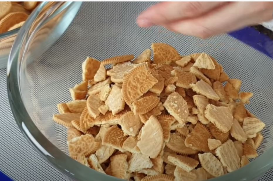 Σπάστε τα μπισκότα σε κομματάκια μέσα σε ένα άλλο μπολ.