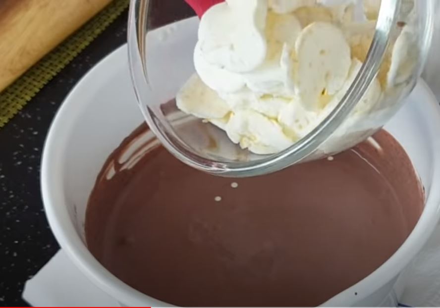 Προσθέστε την κρέμα που βγάλατε απο τα μπισκότα .