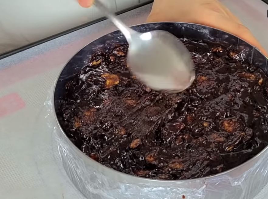 Αδειάστε το μείγμα μέσα σε ένα τσερκι 18 εκ έτσι ώστε να μην υπάρχουν κενά στην άκρη της φόρμας.