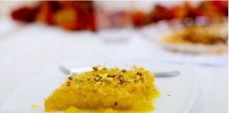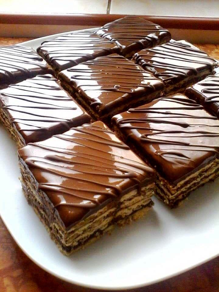 8 Το κόβουμε σε τετράγωνα κομμάτια και μετά το σερβίρουμε κρύο.