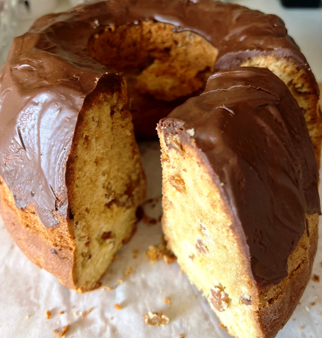 Για το γλάσο σοκολάτας: Λιώστε τη σοκολάτα με το βούτυρο σε μπεν μαρί ή στον φούρνο μικροκυμάτων. Περιχύστε το κρύο κέικ με το γλάσο ή πασπαλίστε με ζάχαρη άχνη.