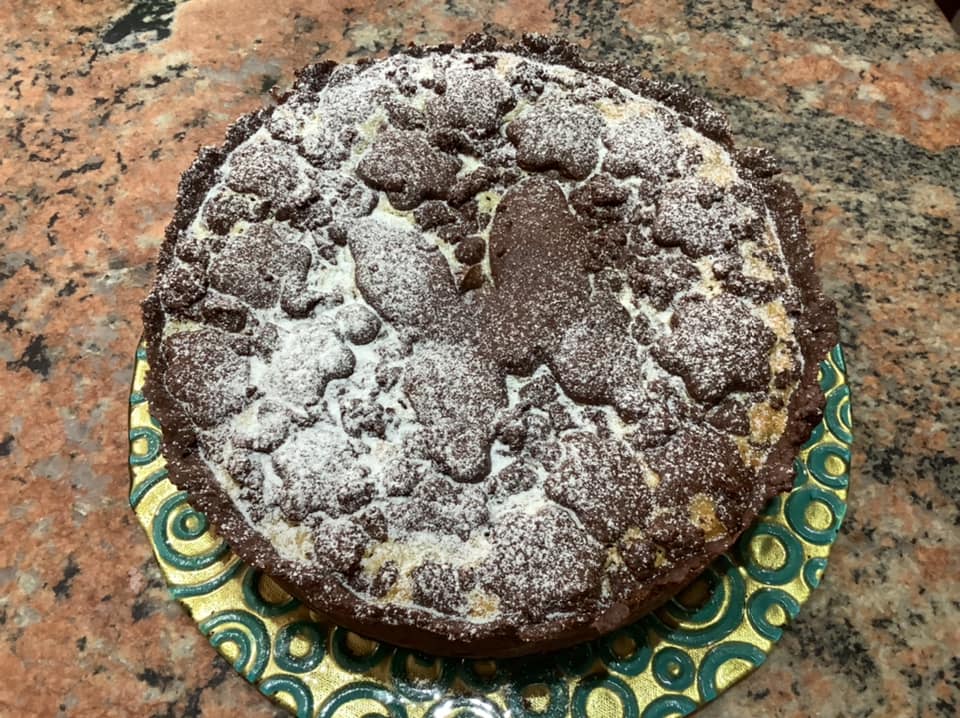 Προσθέστε πινελιές κρέμας φουντουκιού και καλύψτε την επιφάνεια με την υπόλοιπη ζύμη με τη ζαχαροπλαστική, απλά ανοιξτε την σε ένα δίσκο ή κόψτε την σε κομμάτια και σκεπάστε. Ψήνουμε σε προθερμασμένο φούρνο στους 170 ° για περίπου μισή ώρα. Βγάζουμε από το φούρνο και βγαίνουμε σε ένα πιάτο σερβιρίσματος, διακοσμούμε όπως θέλουμε με άχνη ζάχαρη.