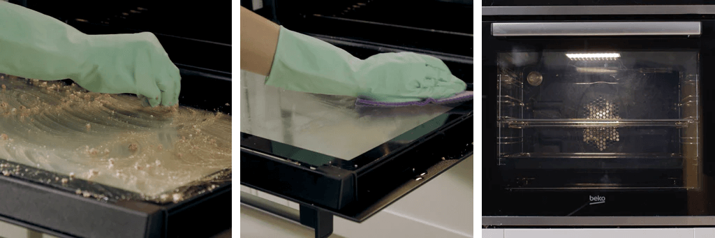 Σκουπίστε το με ένα βρεγμένο πανί και voilà! Μια αστραφτερή πόρτα φούρνου είναι μπροστά σας.