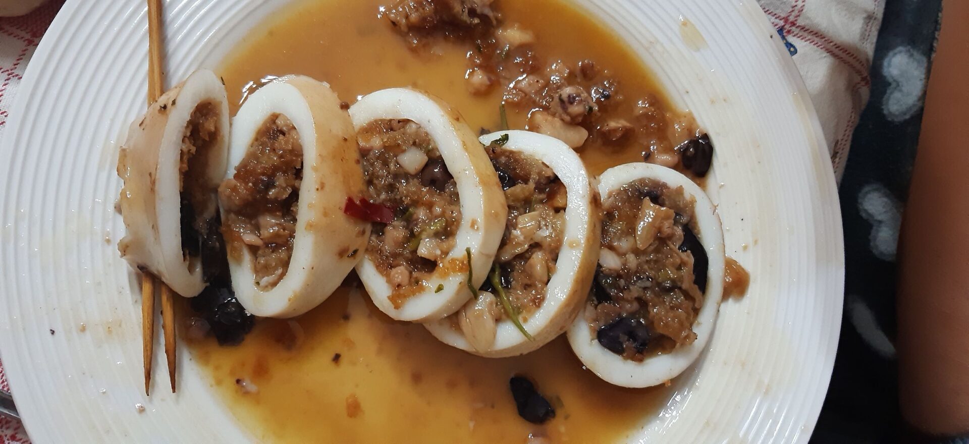 Καλαμάρι γεμιστό με φέτα & ελιές