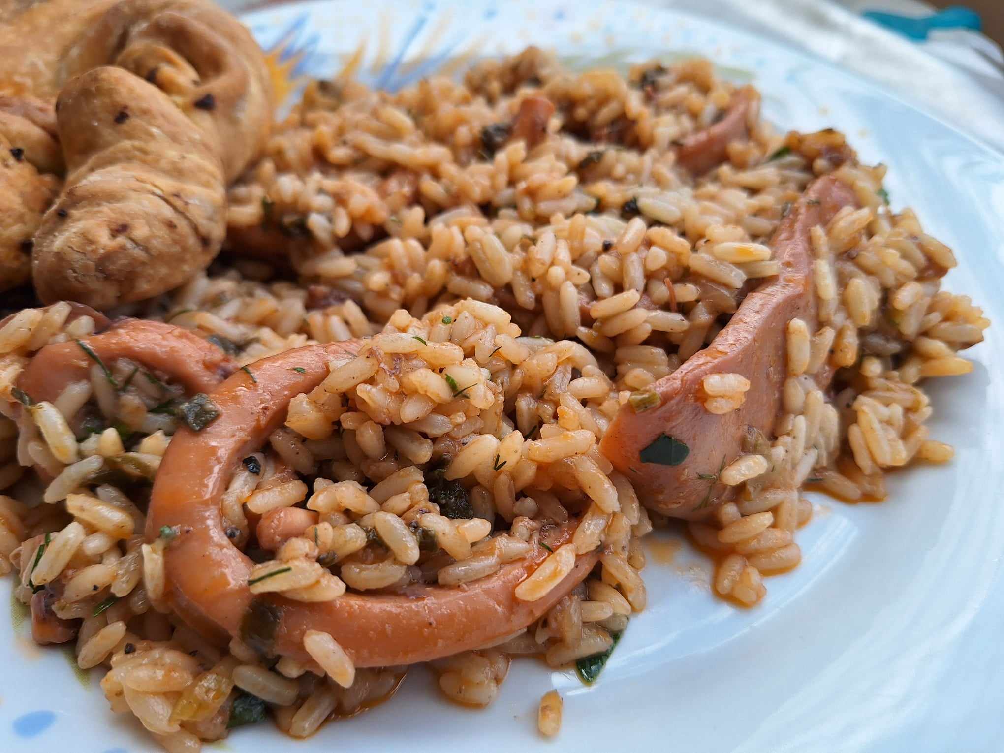 Τα Καλαμαράκια με ρύζι, μαγειρεμένα σε μια ελαφριά σάλτσα ντομάτας με κρεμμύδι, σκόρδο και μυρωδικά όπως μαϊντανό, άνηθο και δυόσμο, αποκτούν μια μεστή γεύση και υπέροχο άρωμα.