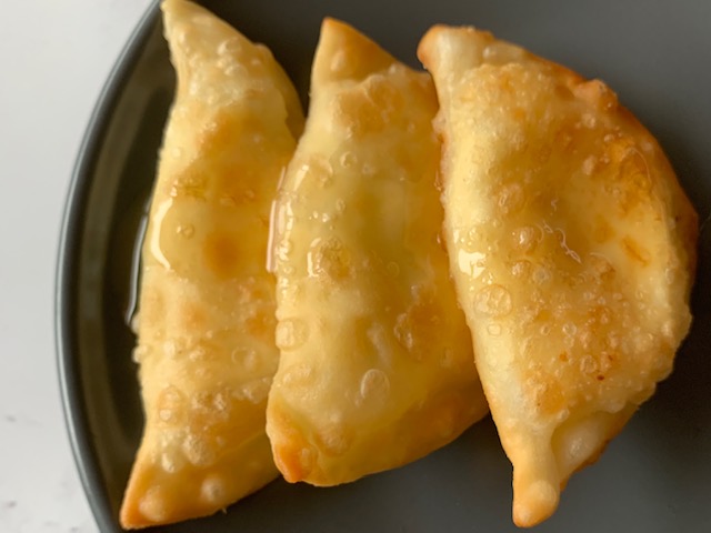 Σε αυτήν την περίπτωση, είναι πιο εύκολο να κόψετε κύκλους ζύμης, είτε χρησιμοποιώντας ένα ποτήρι ή ένα στρογγυλό κόπτη μπισκότων. Τοποθετήστε μια κουταλιά της σούπας επίπεδο στο μείγμα της ζύμης σας και διπλώστε το. Πιέστε κατά μήκος των άκρων με λίγο νερό για να σφραγίσει σωστά.