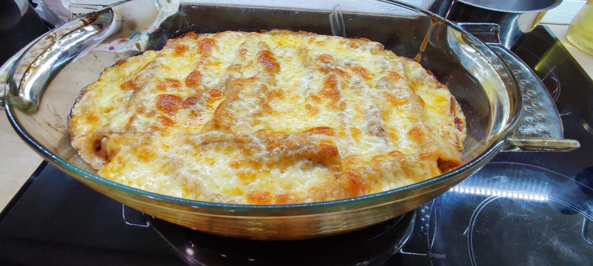 Μετά μια σειρά κανελόνια, τα οποία γεμίζω ένα ένα με ένα πιρούνι ή μια κουταλιά κιμά