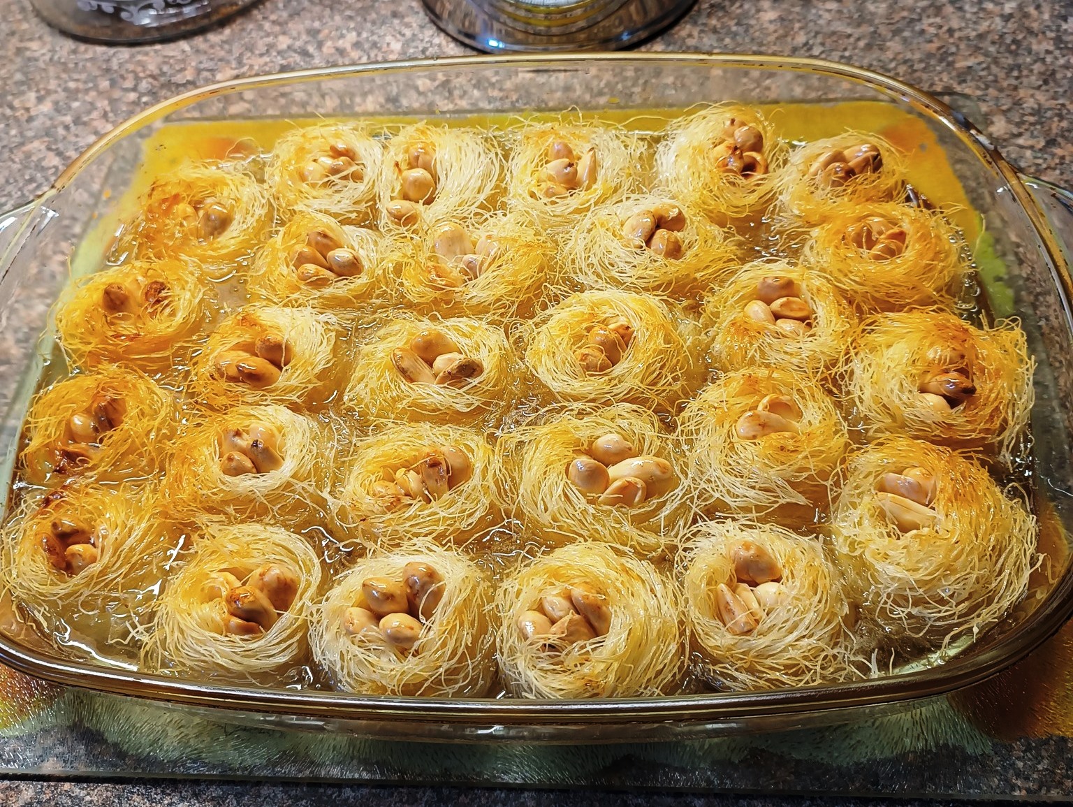 Το σιρόπι το ρίχνουμε λίγο λίγο πάνω από κάθε κανταιφακι να πάει παντού….