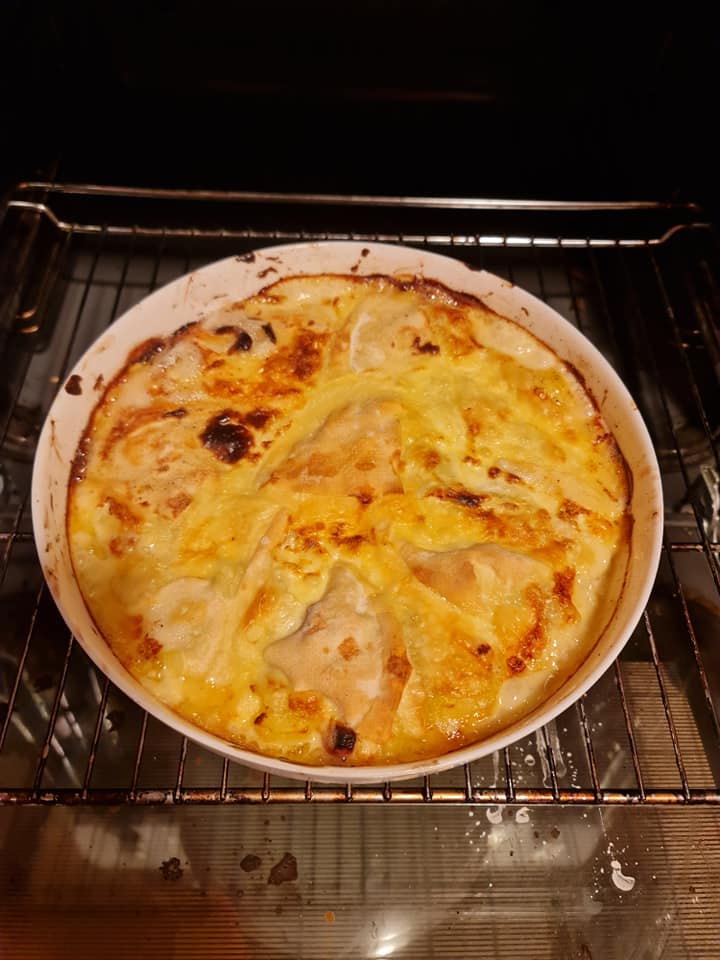 Ψήνουμε σε φούρνο στους 250 βαθμούς να πάρει το τυρί καφέ κρούστα εδώ και εκεί.