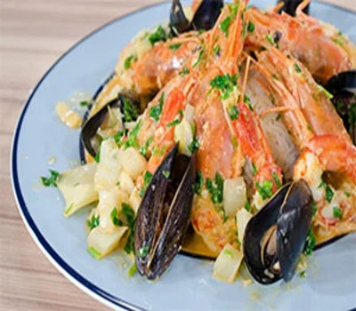 - Στο τηγάνι με τις πιπεριές ρίχνουμε τα μύδια και τις γαριδες να αχνιστούν ελαφρά.