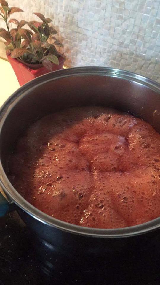 Τώρα βαζουμε τον χυμο να βράσει μέχρι να μείνει 1 λιτρο περιπου.
