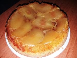 8. Περάστε τη λεπίδα του μαχαιριού στις άκρες του ταψιού για να το αποσπάσετε από τα τοιχώματα του ταψιού, τοποθετήστε μια πιατελα πάνω από το το ταψί και αναποδογυρίστε. Τα μήλα παραμένουν τέλεια προσαρτημένα στο γλυκό.