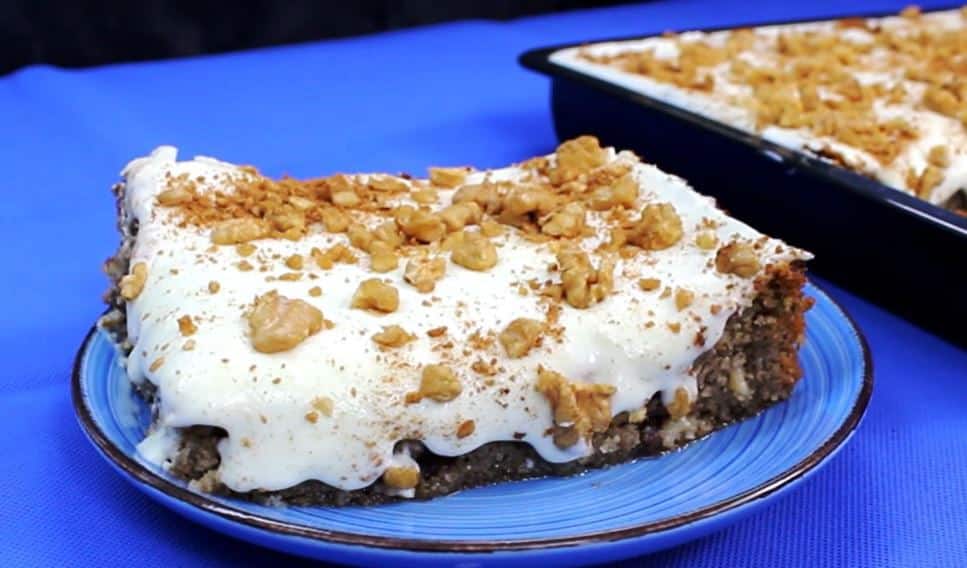 Ανακαλύψτε την πιο αφράτη σιροπιαστή καρυδόπιτα καλυμμένη με μια βελούδινη λευκή κρέμα από ζαχαρούχο γάλα Μια δοκιμασμένη συνταγή για γλυκό ταψιού που θα κάνει το στόμα σας να τρέχει νερό σε κάθε μπουκιά