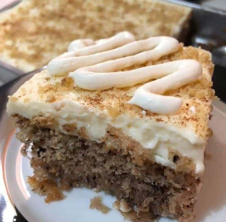 Όταν ομογενοποιηθεί το μείγμα το αδειάζουμε πάνω στη σιροπιασμένη καρυδόπιτα. Πασπαλίζουμε με λίγο τριμμένο καρύδι και μπόλικη κανέλα και φυλάμε στο ψυγείο . Βάζουμε το γλυκό στο ψυγείο για 5-6 ώρες να κρυώσει και να σφίξει. Όσο περισσότερο μένει στο ψυγείο τόσο καλύτερη γίνετε.