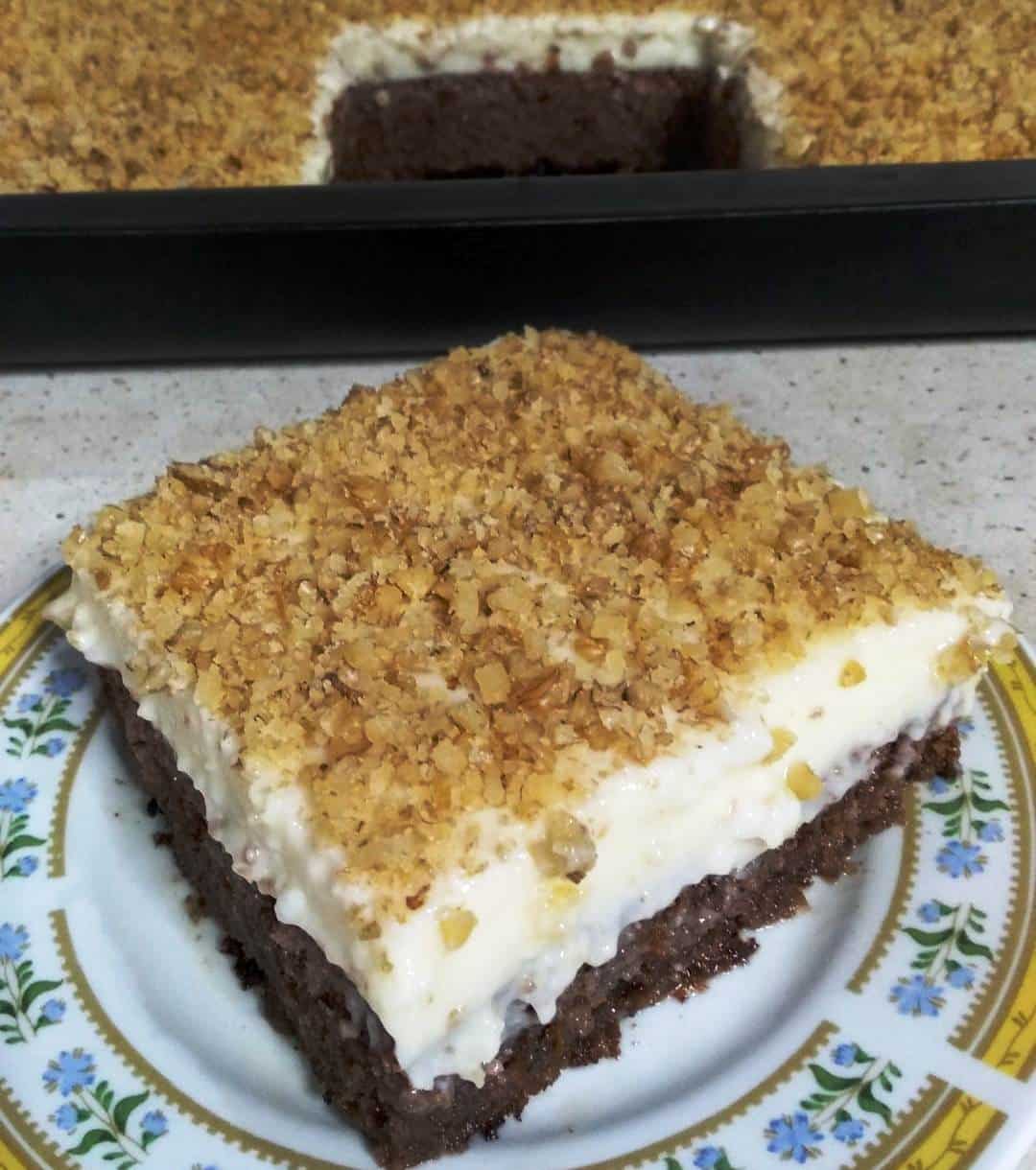 Περιχύνουμε την καρυδόπιτα ζεστή με το κρύο σιρόπι.