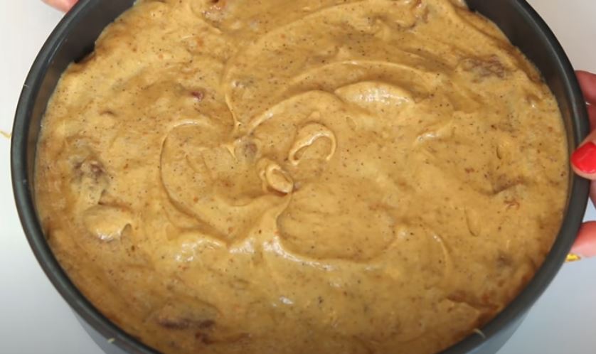 3- Ρίξτε το μείγμα του κέικ στο ταψί και εξομαλύνετε με την σπάτουλα.