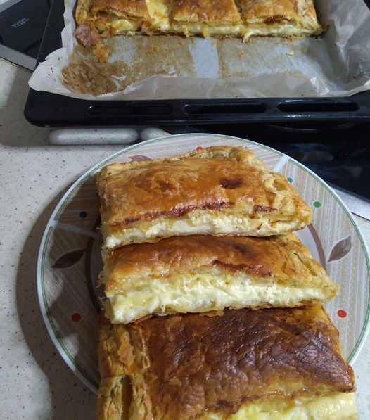 Χτυπάμε τα αυγά με το γάλα και περιχύνουμε την πίτα μας.