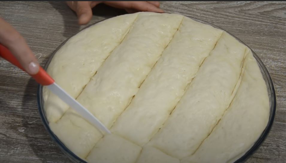 Την χαράσσουμε ελαφρά με ένα μαχαίρι σε τετράγωνα, δημιουργώντας εγκοπές.