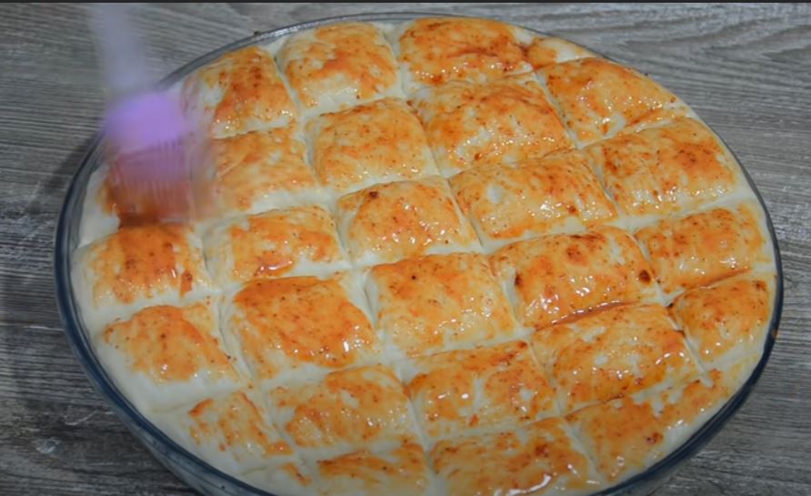 Αλείφουμε το μείγμα κρόκου-πάπρικας στην επιφάνεια του ψωμιού.