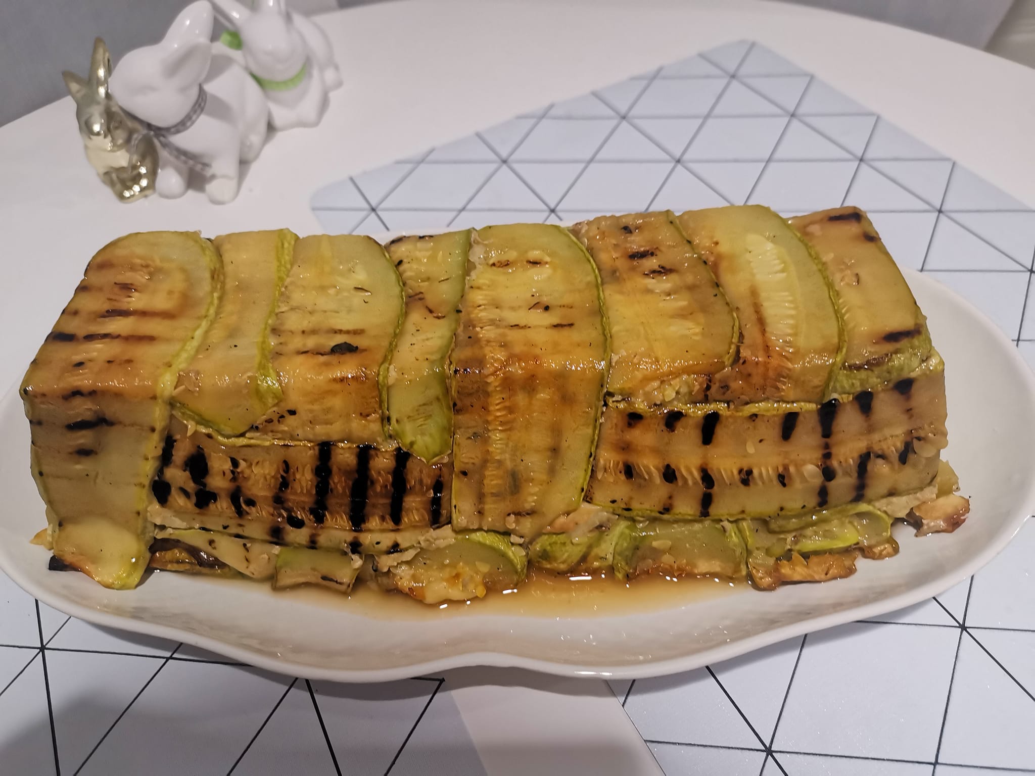 Κόβω τα κολοκυθάκια σε φέτες και τα ψήνω στο γκριλ με ελαιόλαδο. Στραγγίζουμε και κρυώνουμε σε τρυπητό. Βράζω τις πατάτες. Τις ξεφλουδίζουμε και τις τρίβουμε.