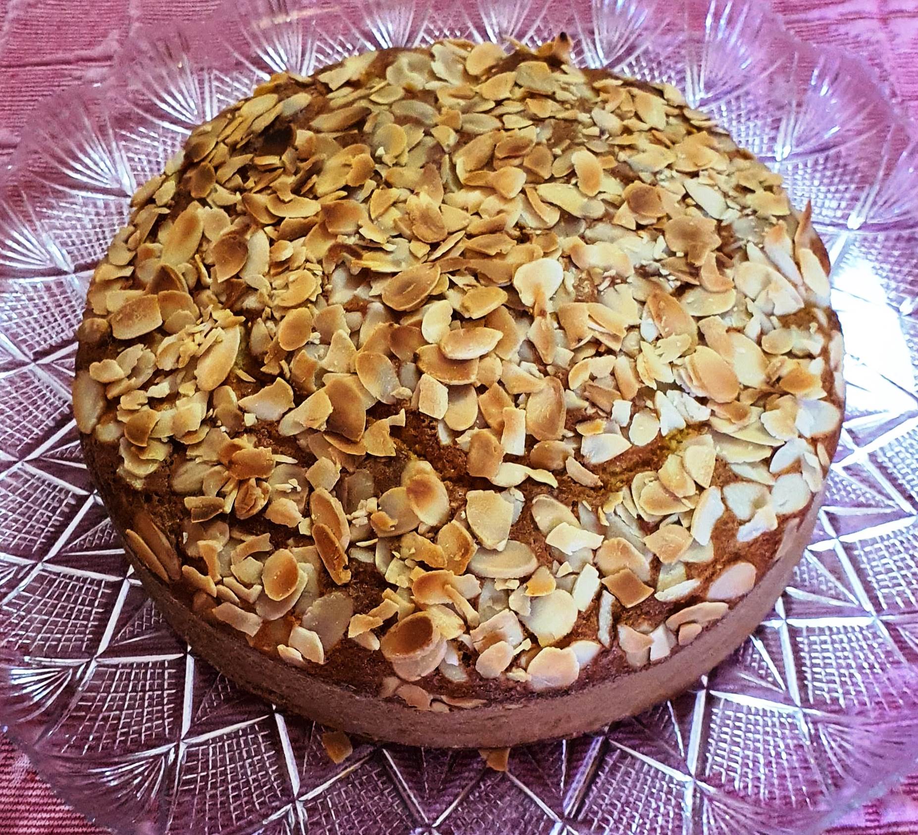 Πασπαλίζουμε την επιφάνεια με τα αμύγδαλα κομμένα σε φέτες.