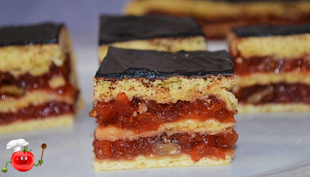 Κεικ με μαρμελάδα μήλο και ξηρούς καρπούς σε γλάσο σοκολάτας