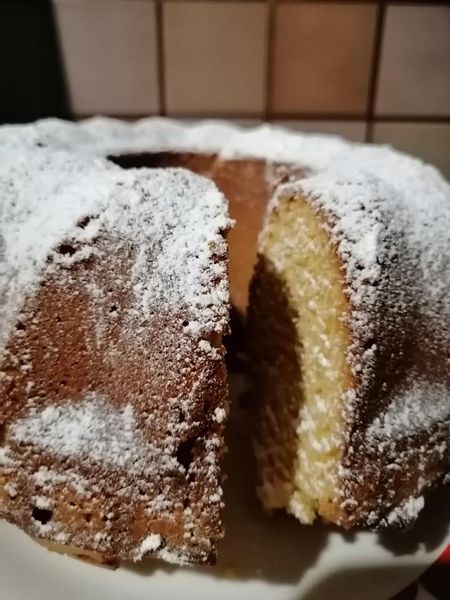 Αφού ξεφορμαρω πασπαλιζω με αχνη ζάχαρη.