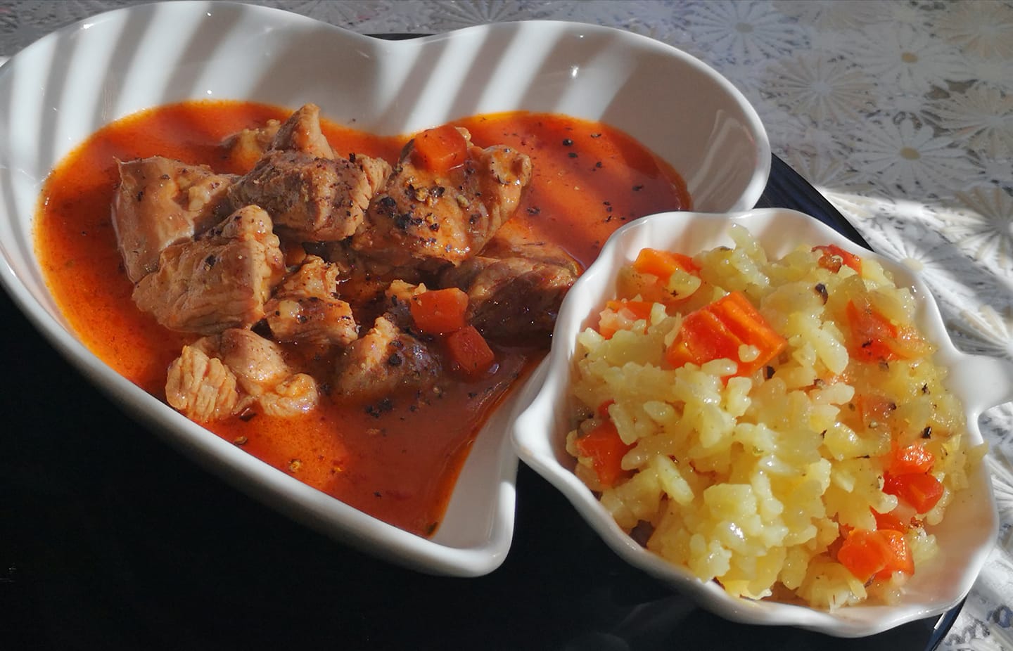Για γαρνιτούρα αφράτο ρύζι με κρεμμύδια και καρότα, καθώς δεν μου αρέσει το “λευκό ρύζι” 😉