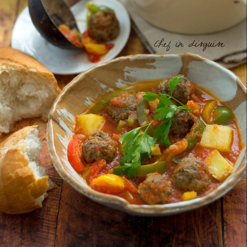 6. Προσθέστε τους κεφτέδες πίσω και στη συνέχεια προσθέστε την πάστα του τομάτα και αρκετό νερό για να βυθίσετε τα κεφτεδάκια (χρησιμοποίησα 3 κούπες, ίσως χρειαστεί περισσότερο ή λιγότερο ανάλογα με το μέγεθος των κεφτέδων και της κατσαρόλας σας)
