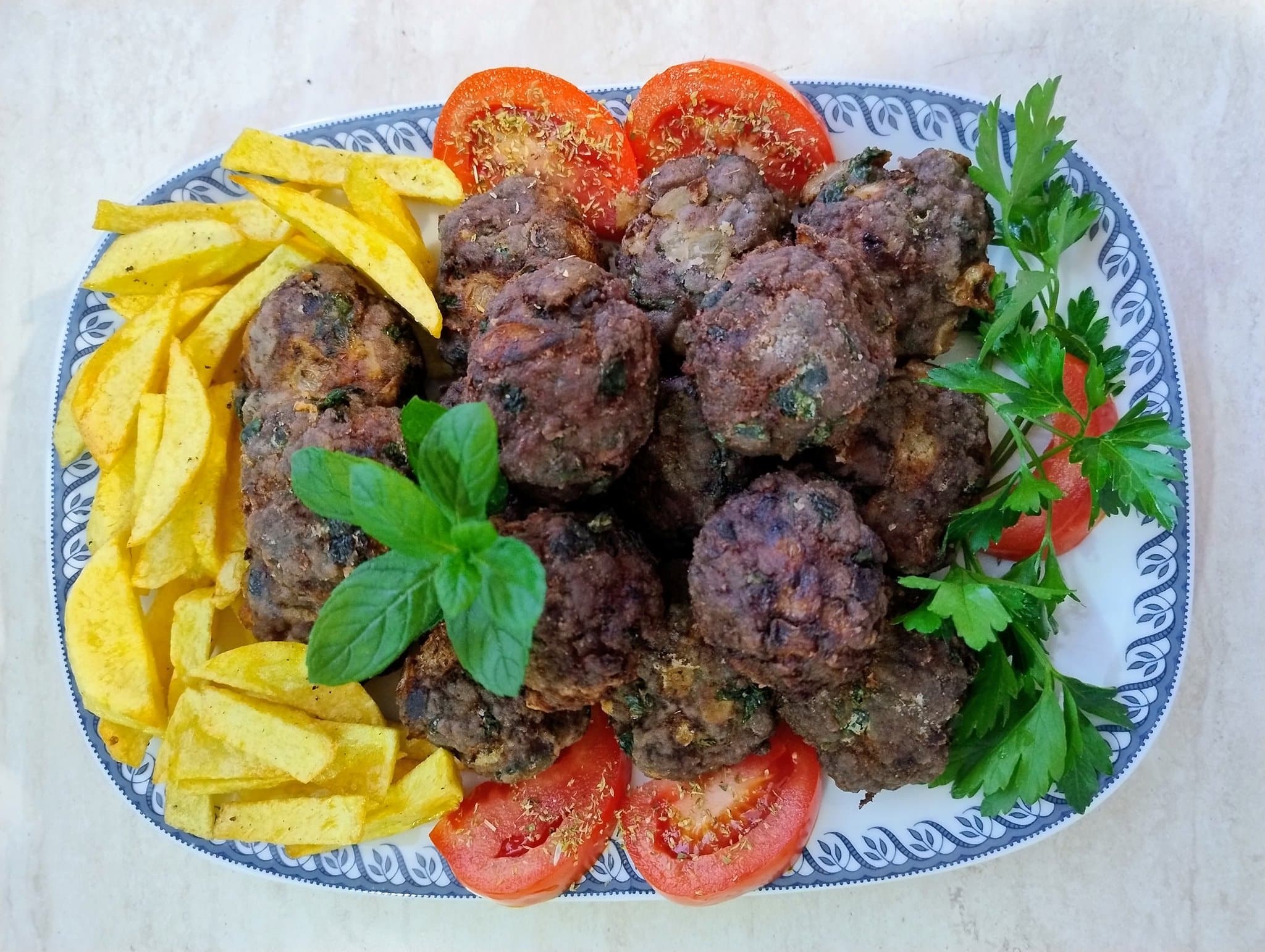 Σερβίρισμα: Σερβίρουμε τους ζεστούς κεφτέδες με τις τηγανητές πατάτες, τα νόστιμα πιταράκια χυλού