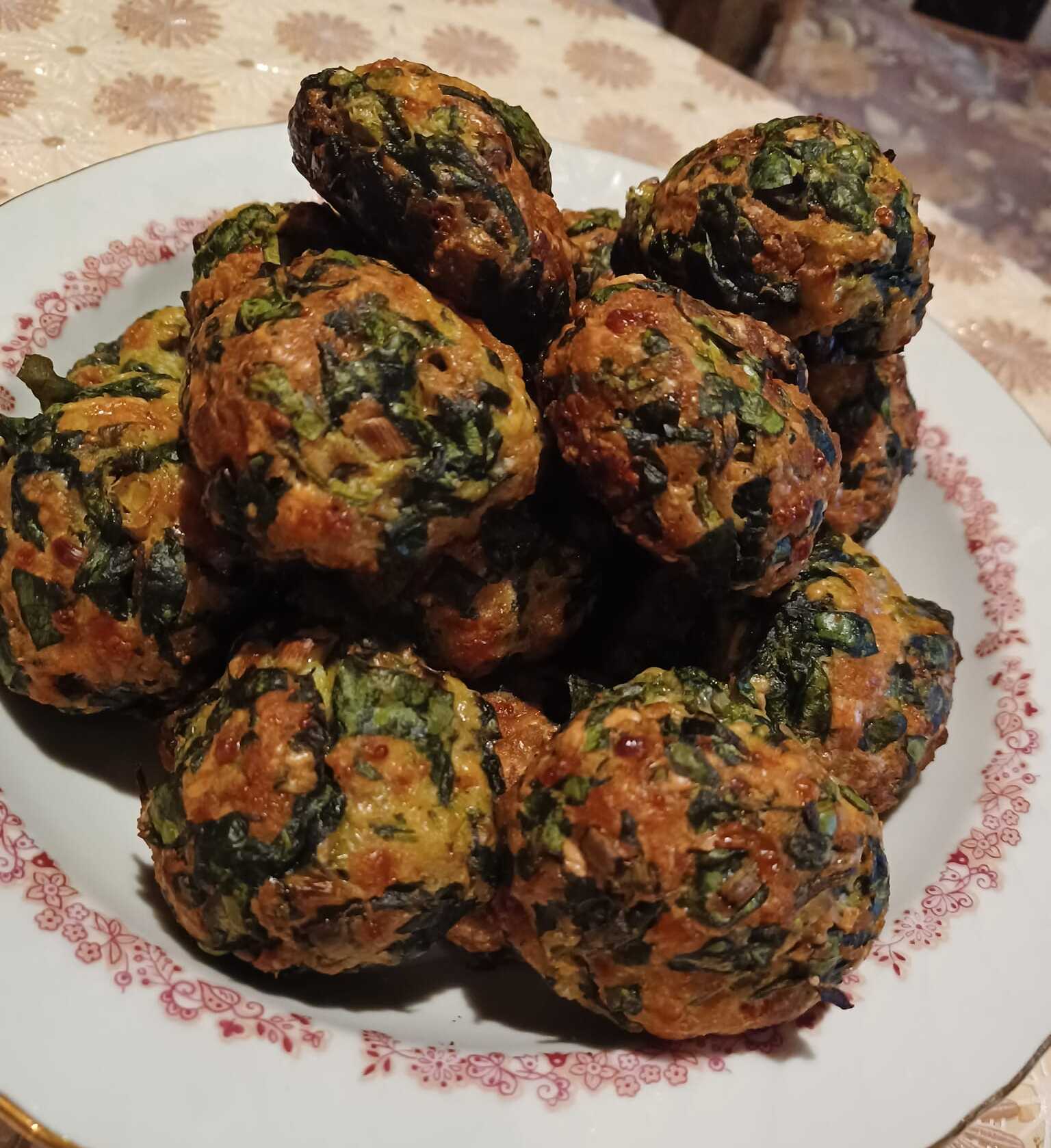 Ζεσταίνουμε το λάδι και με τη βοήθεια μιας κουτάλας παγωτού βγάζουμε μια μπάλα από το μείγμα σπανακιού, πιέζουμε ελαφρά με ένα πιρούνι και ρίχνουμε μέσα το καυτό λάδι. Τηγανίζουμε για περίπου ένα λεπτό από κάθε πλευρά, γυρίζοντας μόνο αφού σχηματιστεί μια ελαφριά κρούστα. Διαφορετικά, κινδυνεύετε να διαλυθούν οι μπάλες. Αφαιρούμε, τοποθετούμε για 2-3 λεπτά σε χαρτί κουζίνας να απορροφηθεί το περιττό λάδι και τα μπαλάκια είναι έτοιμα για σερβίρισμα.