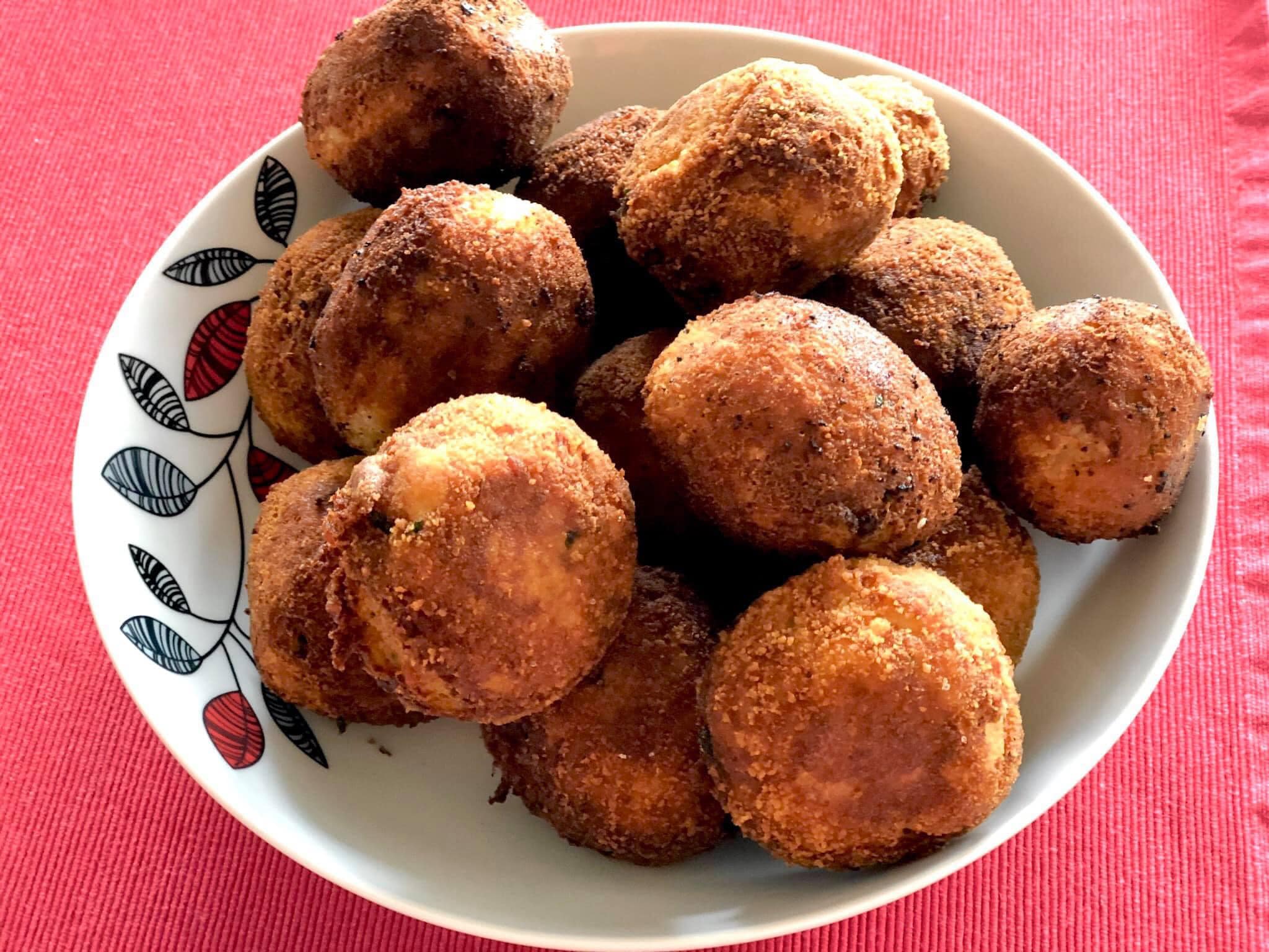 Πλάθουμε τα κεφτεδάκια και τα περνάμε στην τριμμένη φρυγανιά. Τηγανίζουμε τα κεφτεδάκια μέχρι να ροδίσουν.