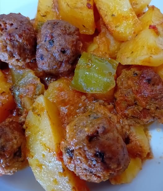 Κεφτεδάκια με Πατάτες και Ντομάτα στο Φούρνο