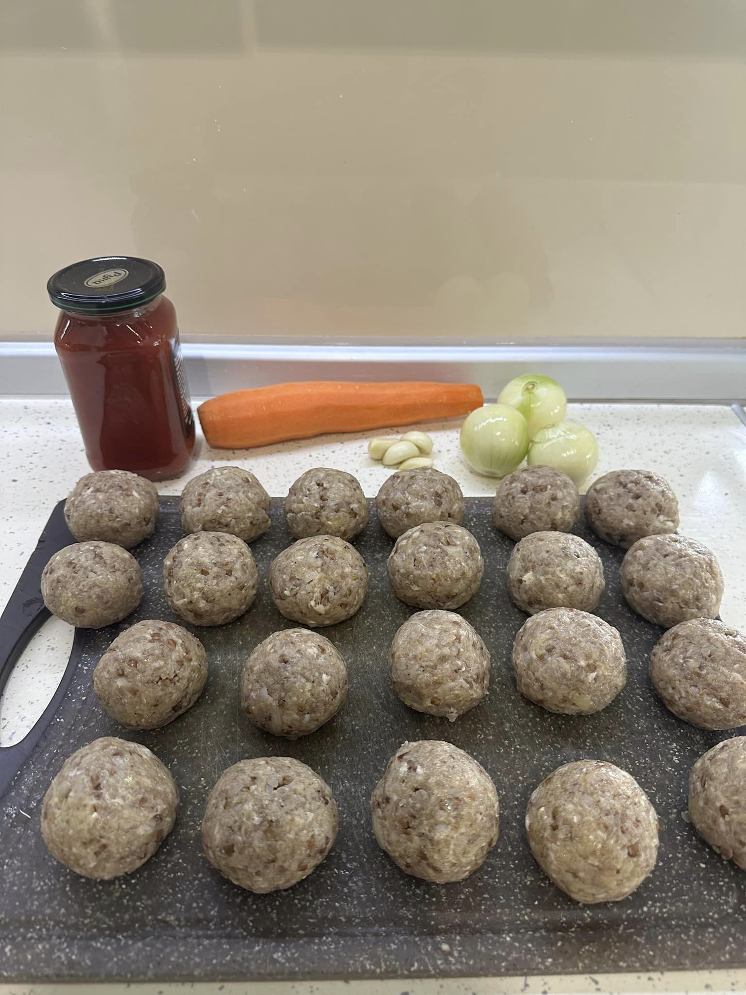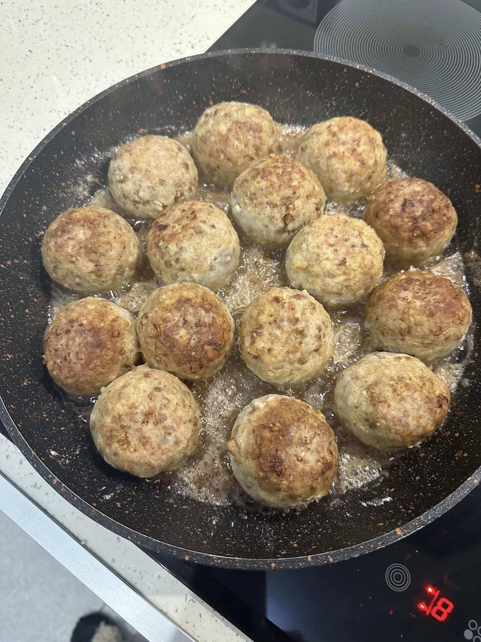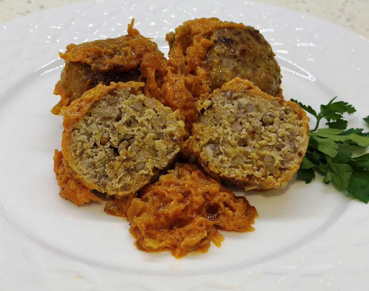 Κεφτεδάκια με φαγόπυρο σε σάλτσα ντομάτα και κρέμα γάλακτος