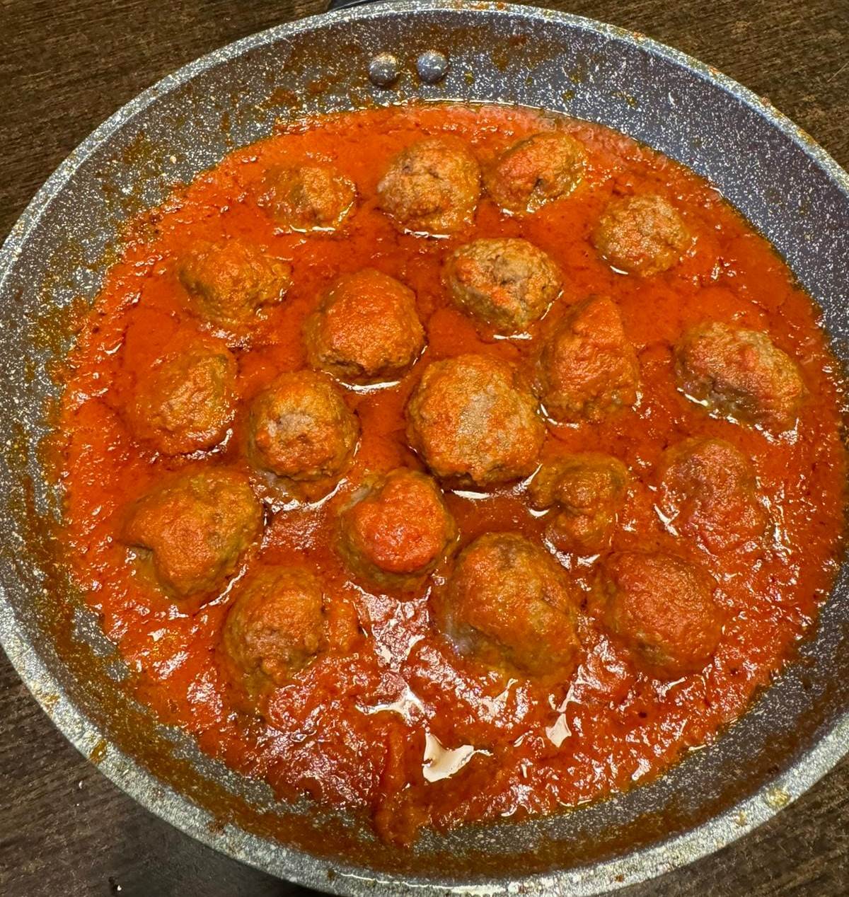 Βάζουμε τα κεφτεδάκια στη σάλτσα και κουνάμε το τηγάνι για να καλυφθούν καλά. Μαγειρεύουμε για 2 λεπτά ακόμα.