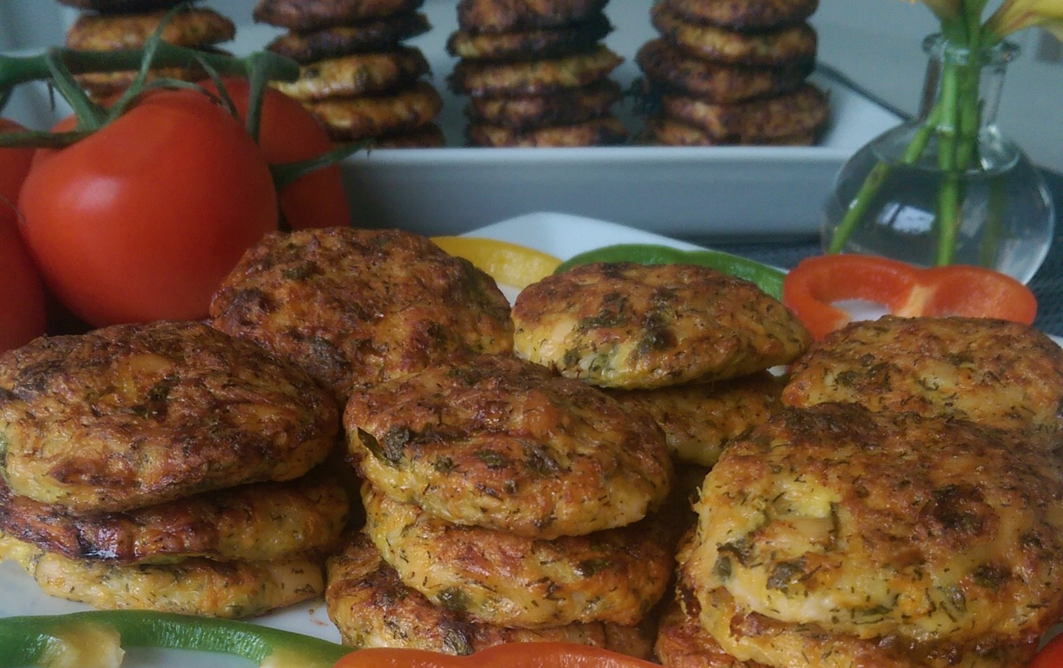 Βάζουμε το ταψί στο φούρνο για 30-35 λεπτά μέχρι να ροδίσει όμορφα. Από αυτή τη σύνθεση έφτιαξα δύο ταψιά. Το αφήνω να κρυώσει και τα βάζω σε ένα πιάτο. Μπορείτε να τα σερβίρετε με πουρέ, με λάχανο ή ωμή σαλάτα, με σάλτσα σκόρδου, με σαλάτα κουσκούς, ή απλά σε σάντουιτς.