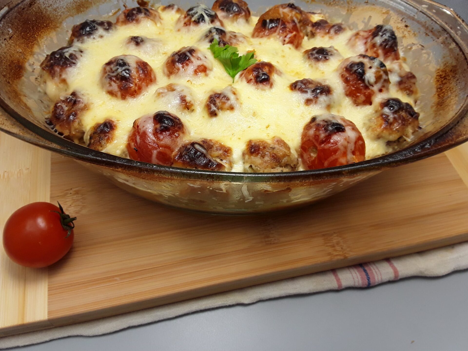 τα ντοματίνια ανάμεσα στους κεφτέδες.
