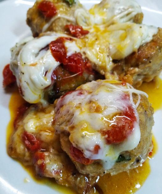 Σε ένα ταψί τοποθετούμε την προετοιμασία με τα κεφτεδάκια.. σκεπάζουμε με τη μοτσαρέλα, μπορείτε να ψήσιμο στο φούρνο περίπου 20/25 λεπτά…