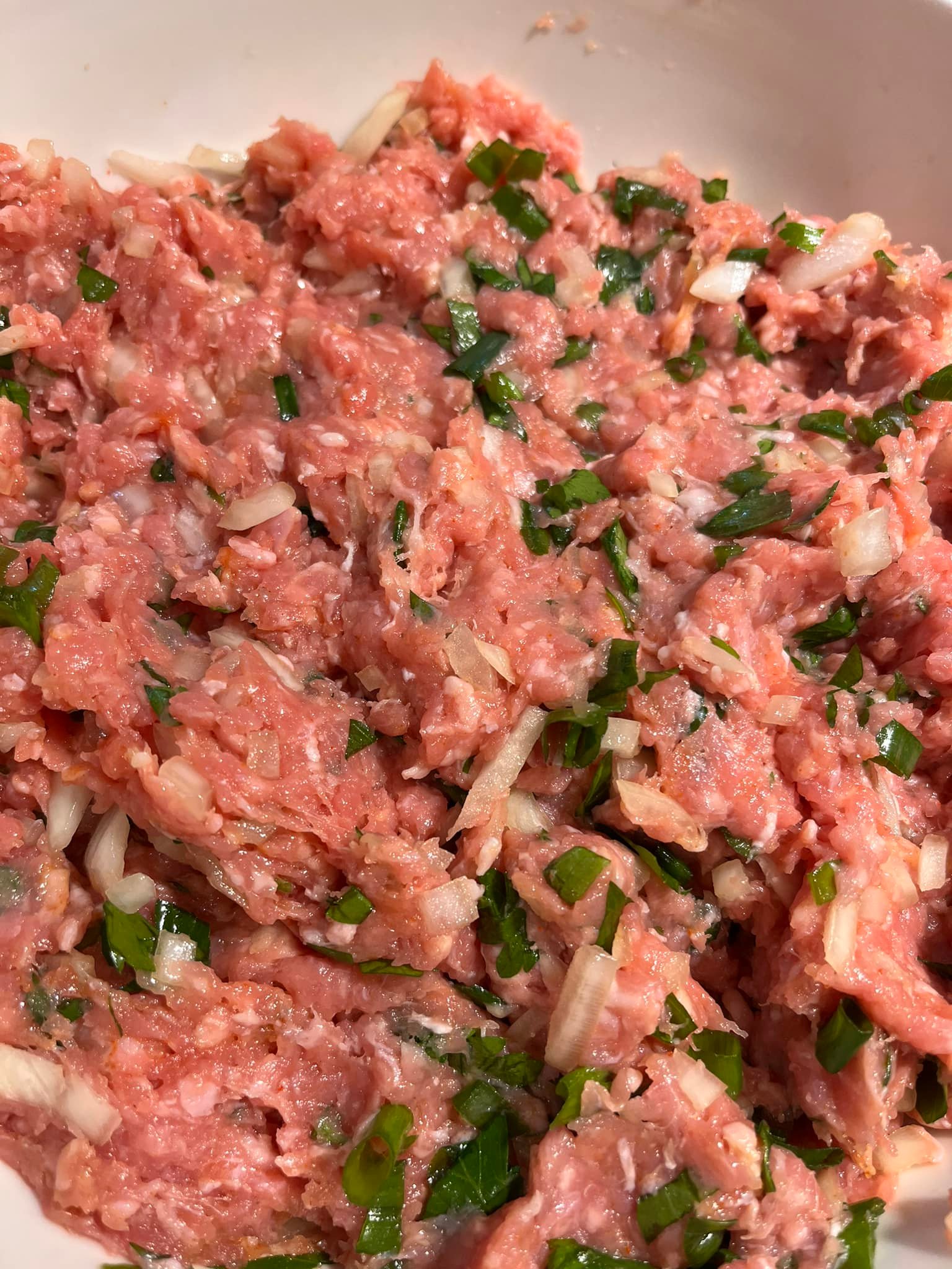 Ζυμώνουμε όλα τα υλικά του κιμά και βάζουμε το μείγμα στο ψυγείο για 1 ώρα.