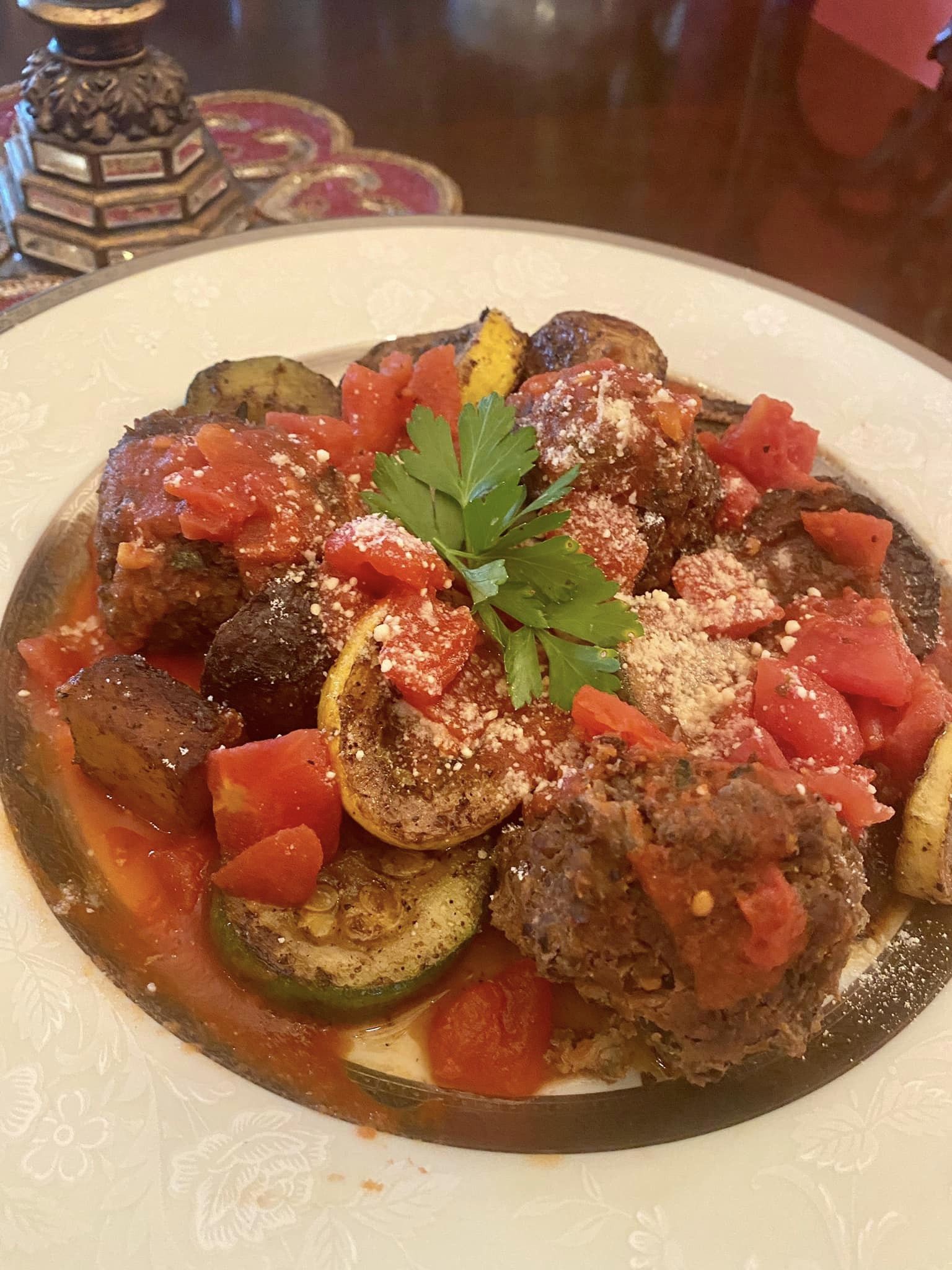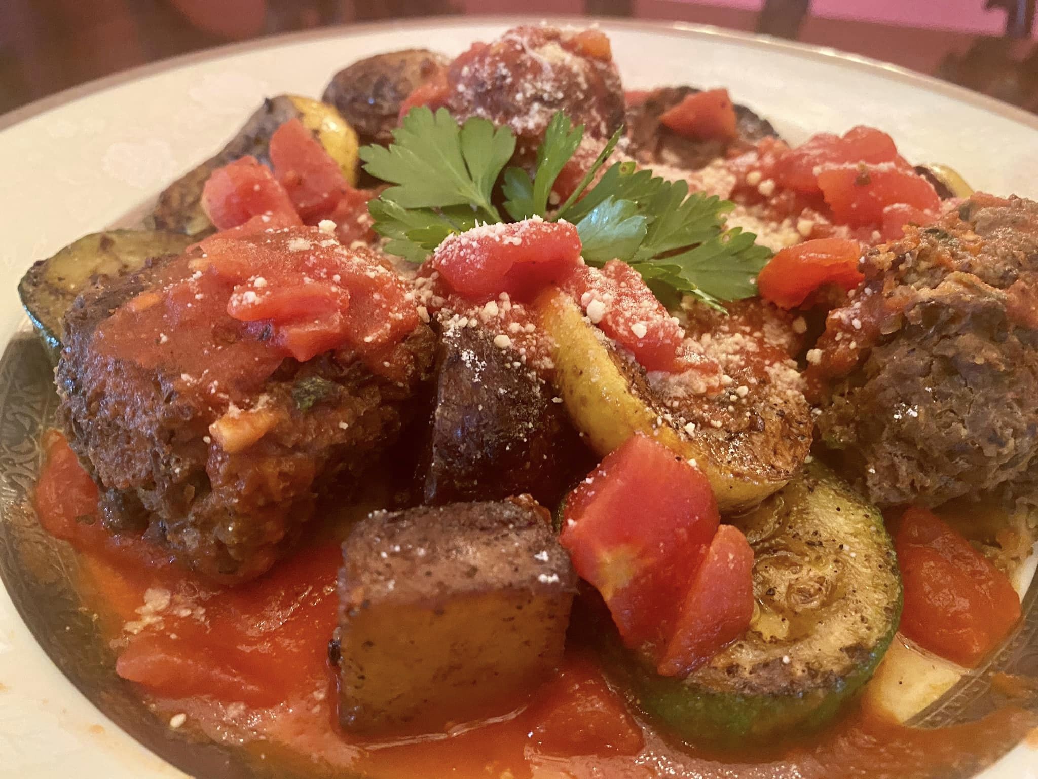 Κεφτεδάκια χωρίς κρέας πάνω από ψητά λαχανικά